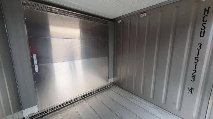 The interior surfaces of the container are made of stainless steel and aluminum so they are easy to keep clean. The container is easily moveable from one place to another with a forklift or crane and can also fit in places where the general 6 m model cannot. Containers come with a standard T-grid floor and lockable double doors.
