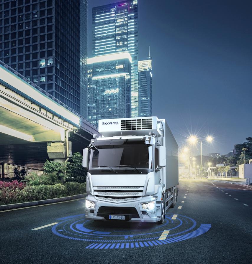 The FK2 targets rigid trucks (e.g., DAF LF, Mercedes eActros) in urban settings, excelling in: