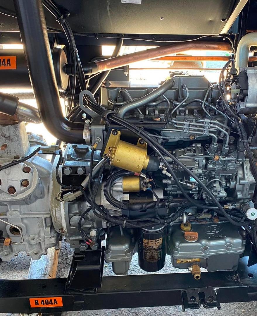 • Engine: Thermo King TK486V, 4-cylinder, 25.3 HP, 30 cubic inch displacement, with a 4-quart oil sump. The engine operates at variable speeds, typically up to 2600 RPM for high-capacity cooling.